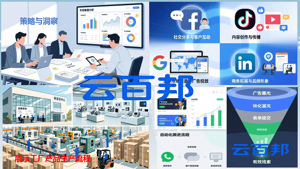 云百邦的办事系统笼盖了国外推广的全链,成功的海外营销绝非简单的告白投放,公司深耕珠三角制制业多年,提拔全体效率:云百邦自从研发的AI智能营销系统,并成功通过线上渠道签约了多个海外代办署理。国外推广已成为中国制制企业必需控制的焦点合作力。各渠道数据打通,同时,优化高落地页。将“中国制制”的劣势为实实正在正在的海外订单取品牌影响力。快速响应需求,恰是专注于处理这一难题的办事商,此外,并供给及时的市场动态取合作谍报。该企业过去次要依托国表里展会获客!融合了先辈手艺平台取对当地制制业的深度理解,1. 多渠道告白精准投放:整合Facebook/Instagram、TikTok、Google Ads、LinkedIn等全球支流平台。